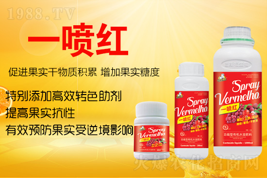 巴斯福功能型有機水溶肥料-一噴紅】可快速促進果實成熟轉(zhuǎn)色,提前上市7-12天,且果實色澤均勻自然;有效促進果實干物質(zhì)積累,增加果實糖度,預防果實受逆境影響,提高果實抗性。